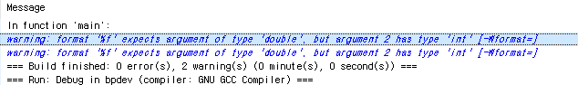 format '%f' expects argument of type 'double', but argument 2 has type 'int' [-Wformat=]|