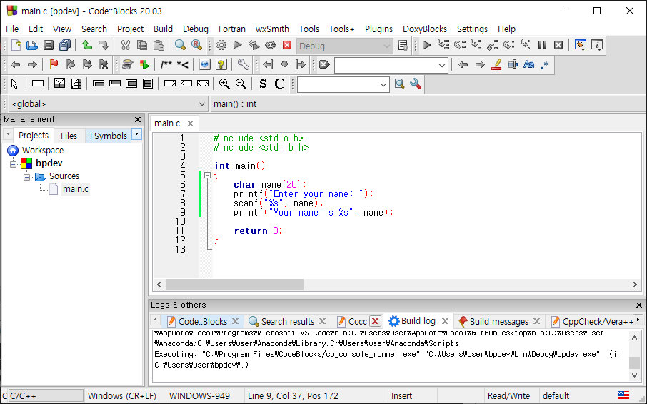 printf("문자열을 입력하세요: ");