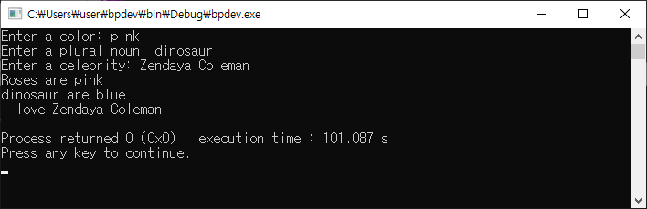 프로그램이 다음 글자열을 입력받기를 기다리고 있는 것을 볼 수 있다.