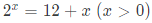 같이 대수적으로 풀 수 없는 방정식에서 직관적으로 x=4를 뽑아낼 수 있는 역량. 이러한 식으로 x=2, 3, 4, ... 처럼 하나씩 대입해보아야 풀리는 문제들을 시행착오법이라 하는데, 물론 해당 예제도 그렇지만 완전 운빨좆망겜은 아니다. 그래프의 개형 및 지수 함수의 성질에서 그리 크지 않은 수에서 한번의 교점이 생기리라는 것을 쉽게 추측할 수 있고 5를 넣어보면 전자가 커지기 때문에 5 이하의 정수들을 하나씩 넣어보고 유리수 영역으로 범위를 좁혀가면 된다. 물론 범위를 좁힐 수 있다는 이야기지 정확한 해를 찾기란 딱 떨어지는 문제가 아니면 어렵다.