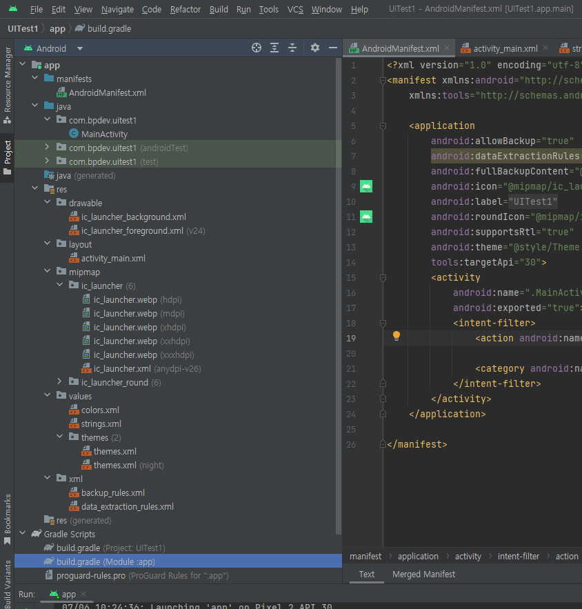 app / java / com.bpdev.uitest1 / MainActivity.java