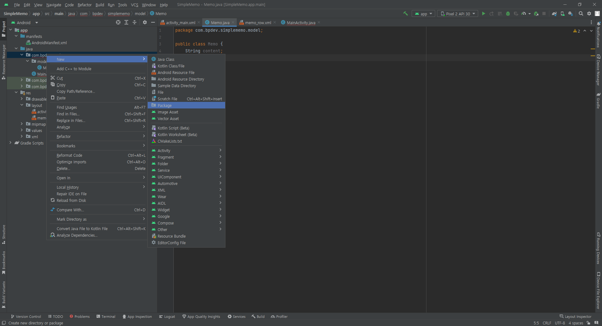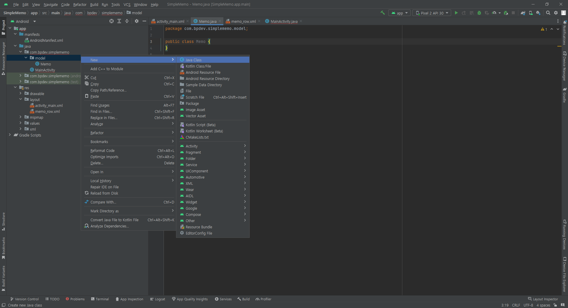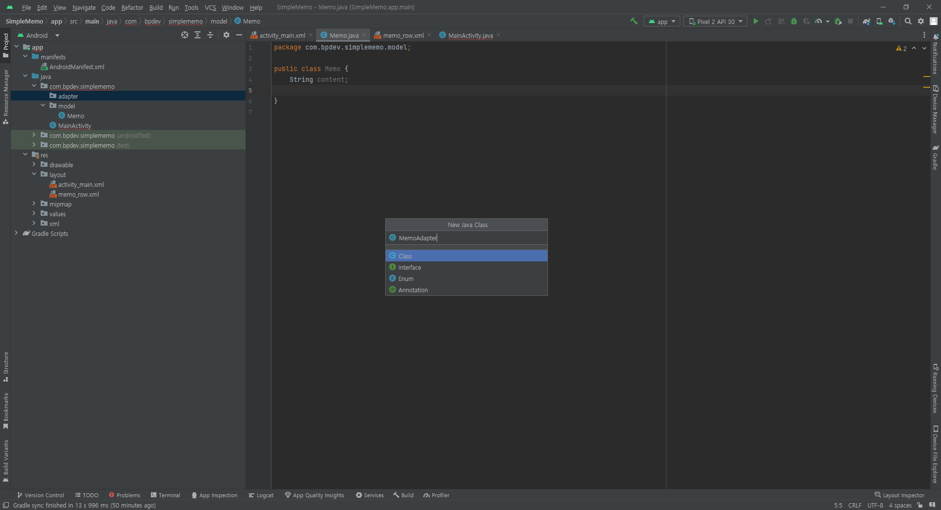 app / java / com.bpdev.simplememo/ model / MemoAdapter.java