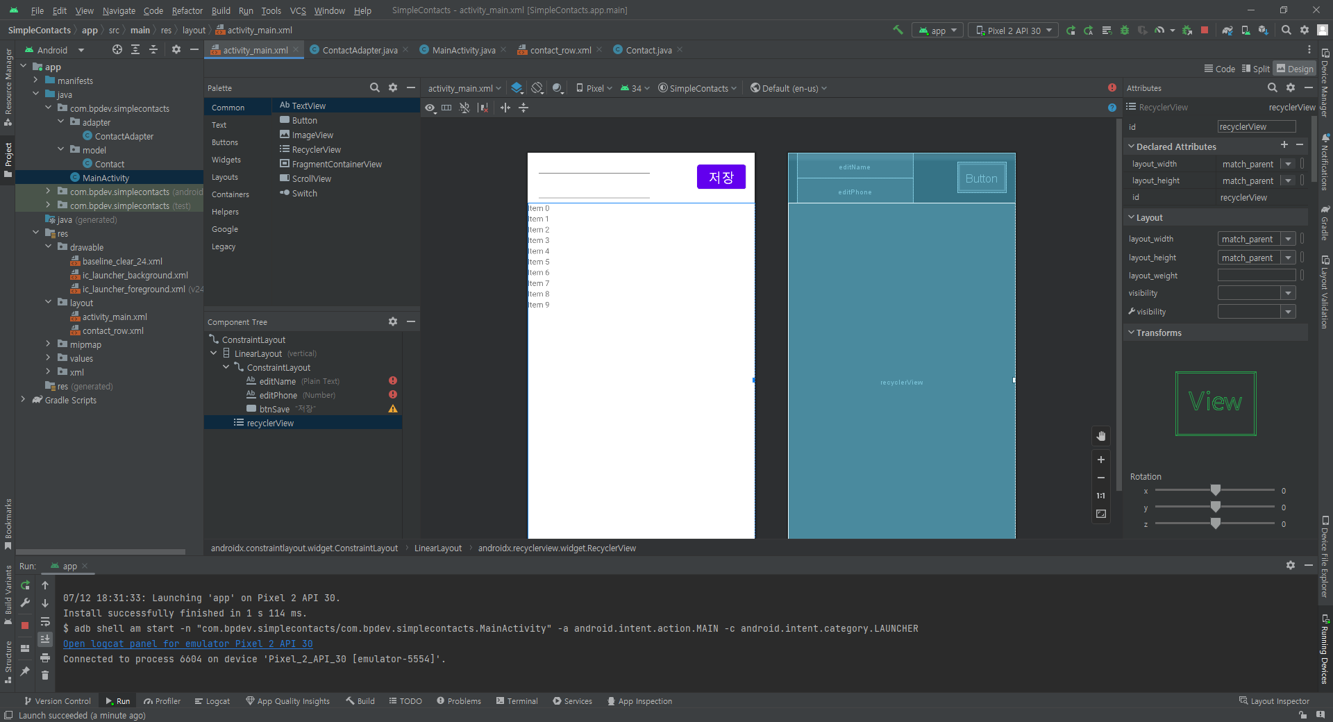 adapter = new ContactAdapter(MainActivity.this, contactList); // 나는 여기서 어댑터 만들어