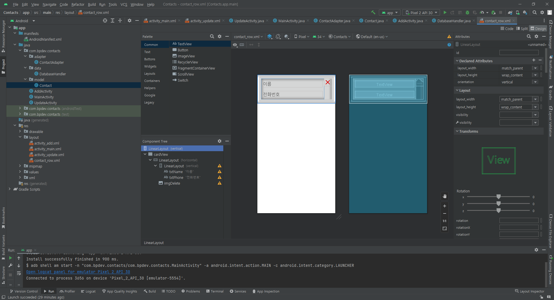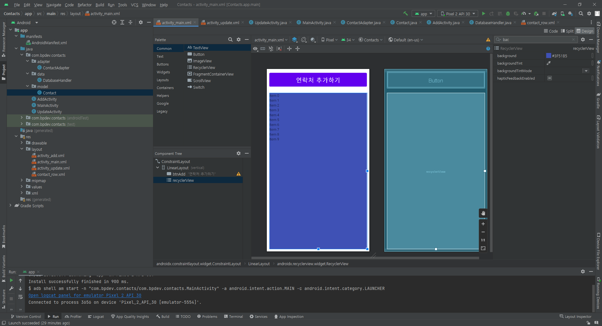 String[] record = { contact.name, contact.phone }; // 배열로 만들어 주었다. // Contact 클래스에 있는 변수들 public으로 설정해 줌.