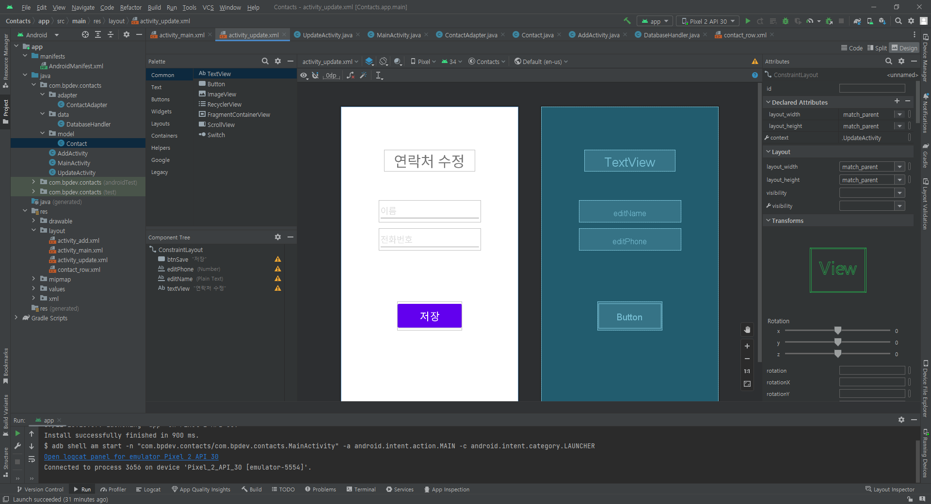 DatabaseHandler handler = new DatabaseHandler(UpdateActivity.this, "contact_db", null, 1);