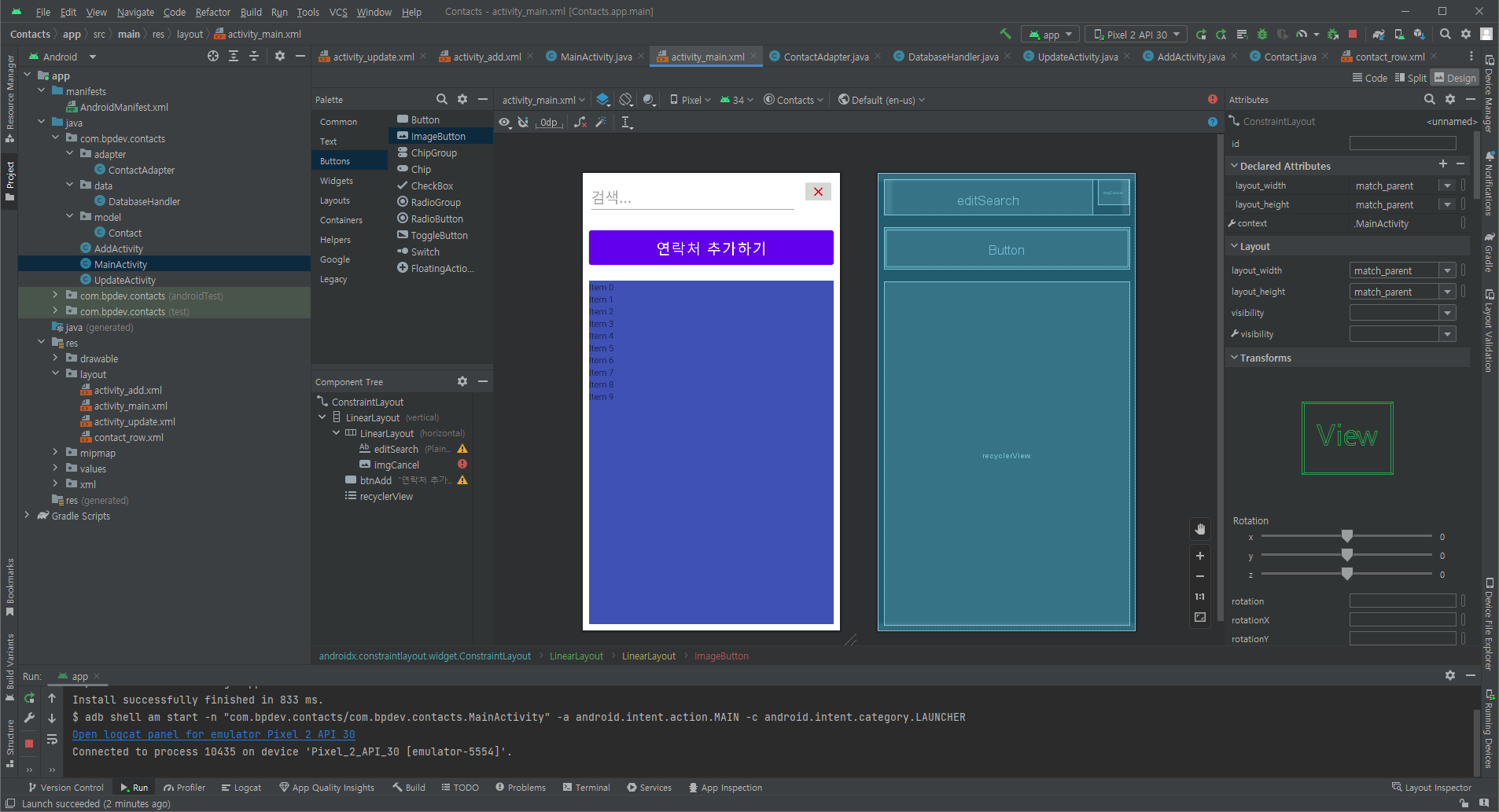 String[] record = { contact.name, contact.phone }; // 배열로 만들어 주었다. // Contact 클래스에 있는 변수들 public으로 설정해 줌.